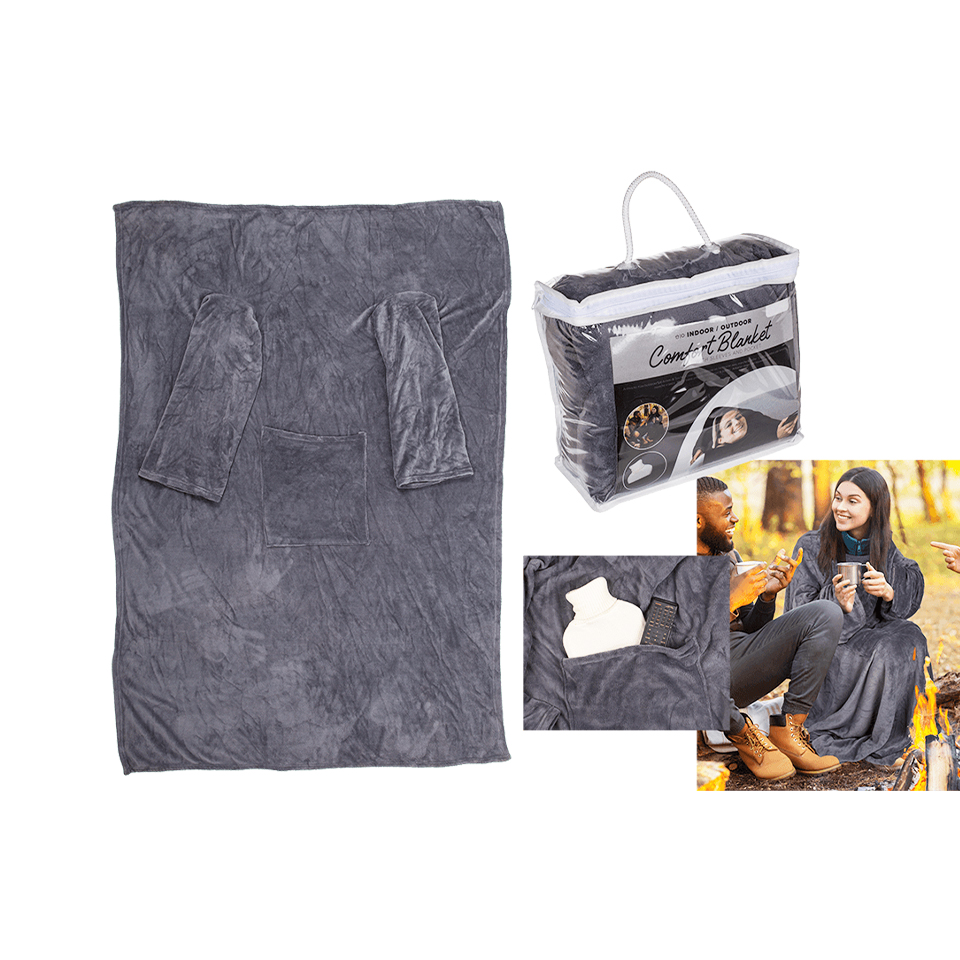 Γκρι κουβέρτα με μανίκια και τσέπες που είναι ιδανική για να απολαμβάνετε ζεστασιά και άνεση.