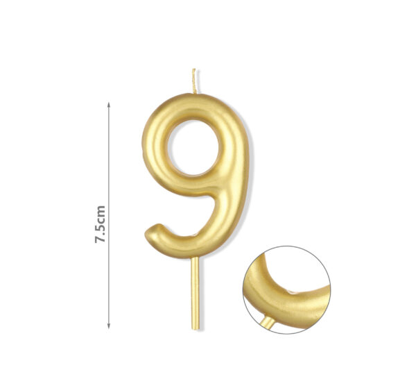 Το κερί αριθμός 9, διαστάσεων 7,5 εκατοστά, είναι η ιδανική λάμψη για τις διακοσμητικές σας δημιουργίες! Με διακριτικό αριθμητικό design, προσφέρει έναν κομψό τρόπο για να διακοσμήσετε και να γιορτάσετε τις ειδικές σας στιγμές.