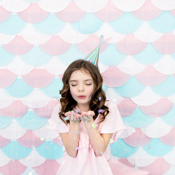 Συσκευασία κομφετί με κυκλικό σχήμα σε ιριδίζον χρώμα. Η ποσότητα ισοδυναμεί με 12 γραμμάρια ανά συσκευασία.