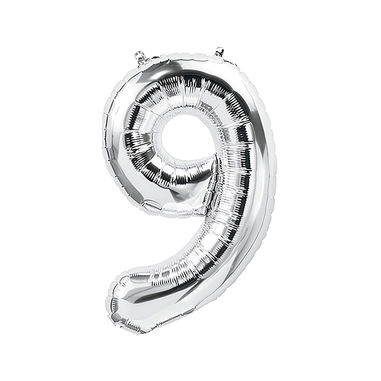 Ασημί Μπαλόνι σε σχήμα αριθμού 9. Ιδανική λύση για εκδηλώσεις που σχετίζονται με σημαντικές ημερομηνίες: Γενέθλια, επέτειος, αποφοίτηση, πρωτοχρονιά και οποιεσδήποτε άλλες ημερολογιακές γιορτές. 32′