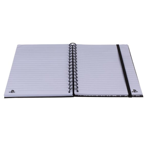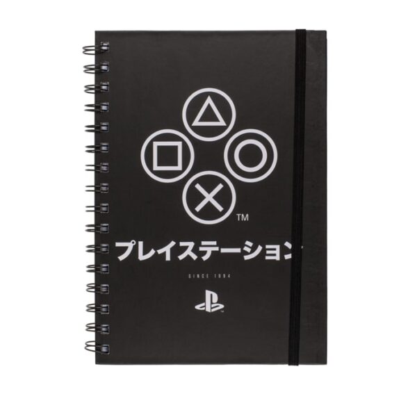 Ένα υπέροχο σημειωματάριο που αναφέρεται στα σύμβολα της γνωστής και δημοφιλούς κονσόλας PlayStation. Το σημειωματάριο έχει σκληρό εξώφυλλο από χοντρό χαρτί. Περιέχει 80 φύλλα με φαρδιές γραμμές σε σπιράλ.