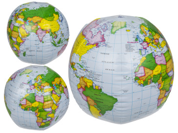 Φουσκωτή σφαίρα, ιδανική για παιχνίδι στο νερό ή στην παραλία. Η φουσκωμένη μπάλα έχει διάμετρο περίπου 41 εκ. Ενώ παίζετε μπάλα, μπορείτε να μάθετε τη θέση των χωρών ή των ηπείρων.