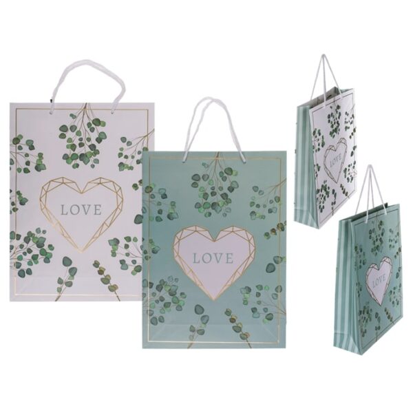 Τσάντα δώρου με τη λέξη LOVE. Ιδανική για δώρο ή δώρο. Η τσάντα διατίθεται σε δύο χρώματα – λευκό ή πράσινο. Διαστάσεις:25 x 8,5 x 34 cm