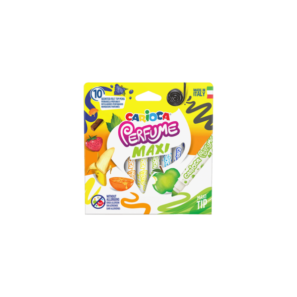 Αρωματικοί μαρκαδόροι της Carioca για να μυρίζουν ωραίες όλες οι ζωγραφιές σου. Η κωνική μύτη είναι ιδανική για λεπτομέρειες αλλά και τα γεμίσματα. Δεν περιλαμβάνουν ίχνη από αλλεργιογόνες ουσίες. Το μελάνι ξεπλένεται εύκολα με νερό.