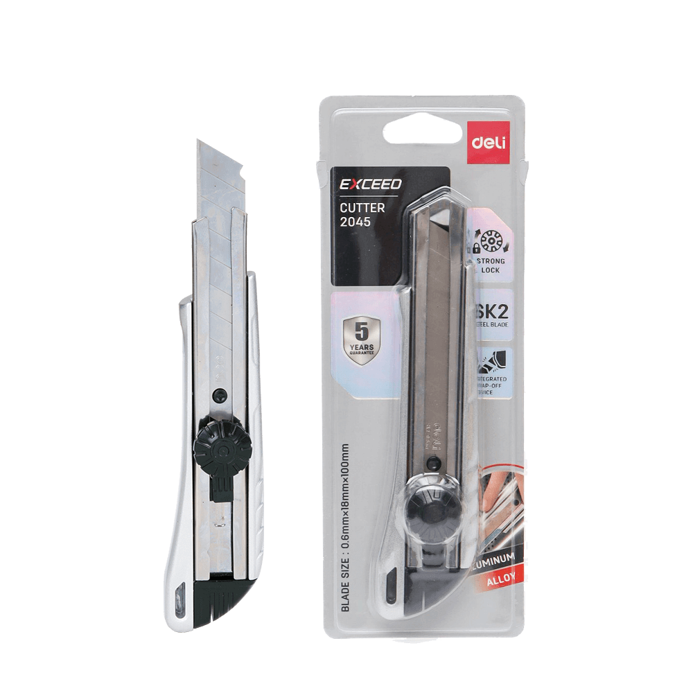 Το κοπίδι εργασίας Exceed E2045 της Deli με λάμα 10cm είναι η ιδανική επιλογή για κάθε επαγγελματία. Με εργονομικό σχεδιασμό, μεταλλική στιβαρή λαβή και βίδα ασφαλείας για τη λάμα εγγυάται απόλυτα σταθερό κράτημα. Η λάμα του είναι άκρως ανθεκτική, με αποσπώμενα επιμέρους κομμάτια, για να κόβεται το φθαρμένο μέρος και να παραμένει πάντα αιχμηρή. Για μεγαλύτερη ευκολία στη μεταφορά, αλλά και τη χρήση από επαγγελματίες, έχει σχεδιαστεί κατάλληλα για να κρεμιέται.