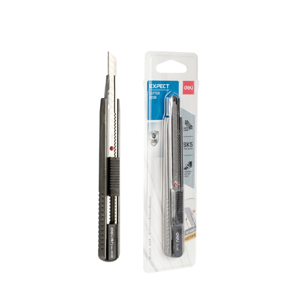 To μικρό μεταλλικό κοπίδι Expert E2036 της Deli με λάμα 8cm καλύπτει τις καθημερινές ανάγκες στο γραφείο ή το σπίτι. Έχει αυτόματο μηχανισμό ασφαλείας για σταθεροποίηση της λάμας. Η λάμα διαθέτει αποσπώμενα επιμέρους κομμάτια, για να κόβεται το φθαρμένο μέρος και να παραμένει αιχμηρή.