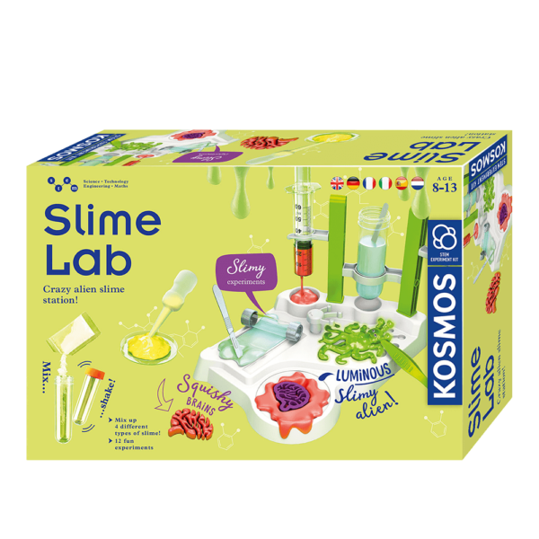 Τα παιδιά μπορούν να τα κάνουν όλα με το εκπαιδευτικό σετ Εργαστήριο Slime του Kosmos. Χρησιμοποίησε τη σύριγγα για να πραγματοποιήσεις δοκιμές ιξώδους, κύλησε το λάσπη με ένα ρολό, και κόψε την με τσιμπιδάκια και ένα πλαστικό νυστέρι. Εξερεύνησε τον κόσμο της χλαπάτσας (slime) και τις ιδιότητες όπως τα διαφορετικά χρώματα, τα αστραφτερά συστατικά της και εφέ λάμψης και αλλαγής χρώματος.Κατάλληλο για παιδιά άνω των 8 ετών.